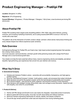 You will help Pratilipi FM transition from a rapidly growing product to a reliable and scalable business model where technology fosters creativity rather than impedes it. Enjoy autonomy, accountability, and a significant role in the journey towards achieving the company's next $3M ARR milestone.